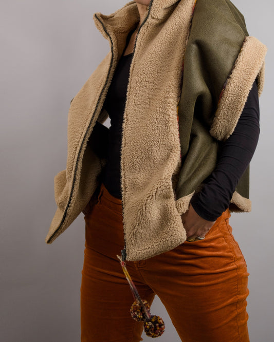 UnavailableUpcycled Grey-Blue with Silver Paillettes Gilet