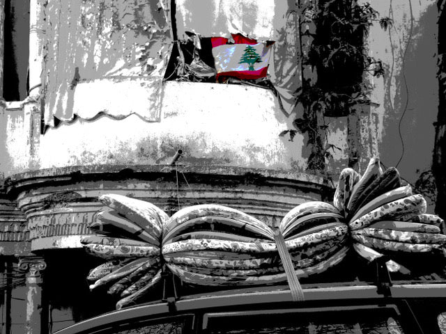 This scene captures a lot of that history. The red in the flag represents the blood shed, while the Cedar tree symbolizes strength and resilience. For both Lebanese citizens and expatriates, it is the perfect, beautiful flag. By keeping it in color and alone, I aim to tell the two different stories—that even if we struggle and suffer, we have that one flag that unites us.