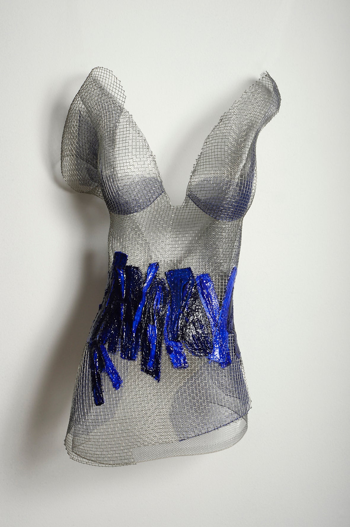 “Belt”, shows a woman’s body with a bodice that wraps around her waist and prevents her from moving freely. Imprisonment has both a physical and a moral aspect. Society and prejudice prevent her from choosing her destiny freely.