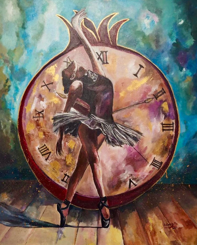 Datevig Berberian’s Celebrate the Moment embodies the essence of resilience, transformation, and the fleeting nature of time—key themes that align seamlessly with the exhibition’s exploration of the body as a vessel of experience and expression. The ballerina, poised in a moment of balance against the backdrop of a pomegranate-shaped clock, symbolizes movement and stillness. She represents the human ability to remain present, enduring life’s hardships with grace while embracing the inevitability of change.