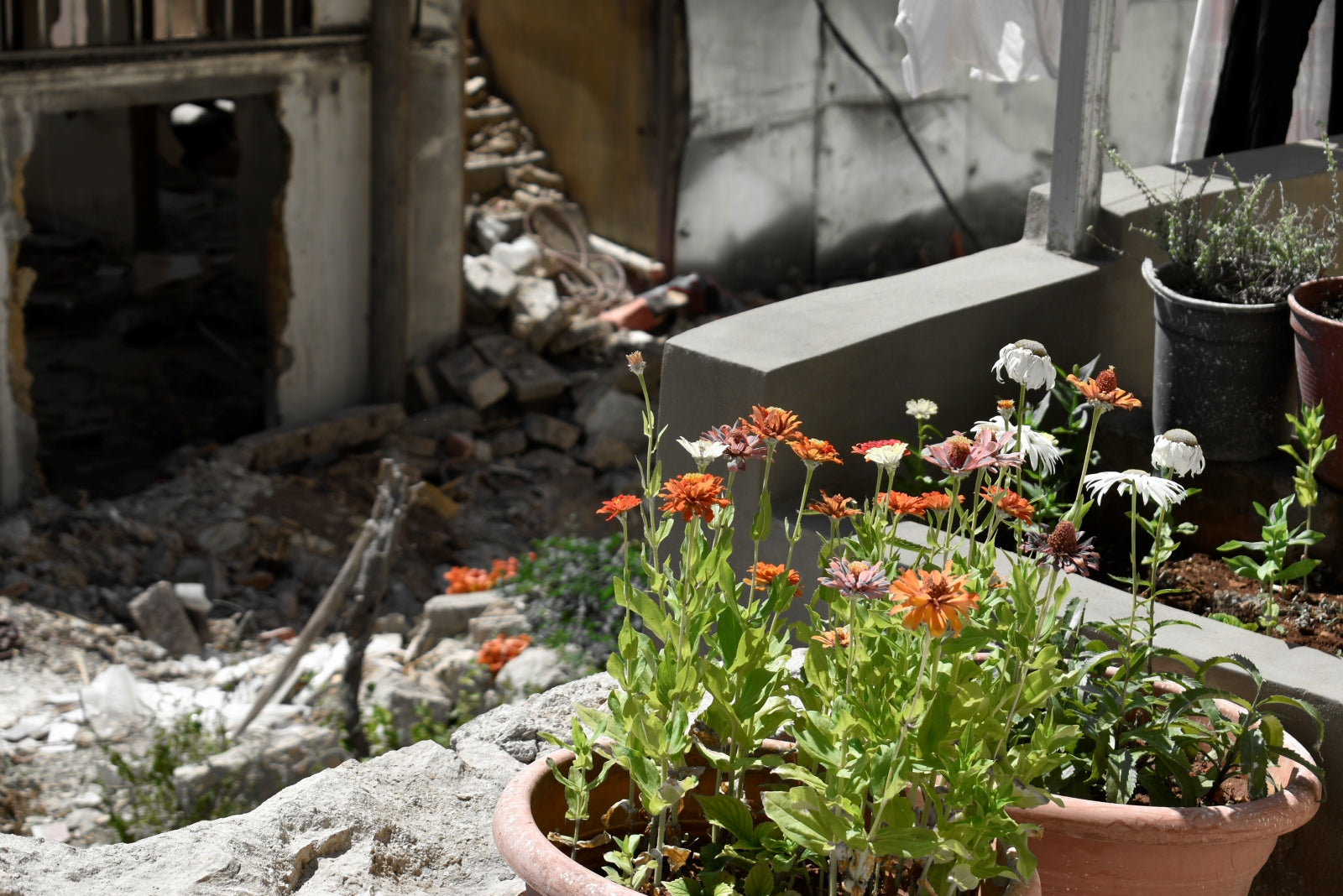 Context: Coming back home, this lady determined to breathe life into the neighborhood, planting a bag of seeds rescued from the ruins of her house.