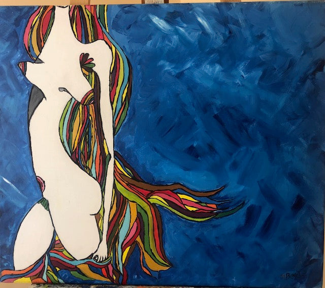 Drawing inspiration from the iconic "Flower Power" movement of the 1960s and 1970s, this artwork reimagines the female body as a site of peaceful resistance and empowerment. Aligned with the exhibition's focus on "Embodied Realities," the vibrant floral motifs become metaphors for bodily strength, resilience, and beauty. The artist encourages every woman to embody her right to exist, persist, and flourish, reclaiming her body not as an object of conflict but as a powerful expression of identity and peaceful protest.