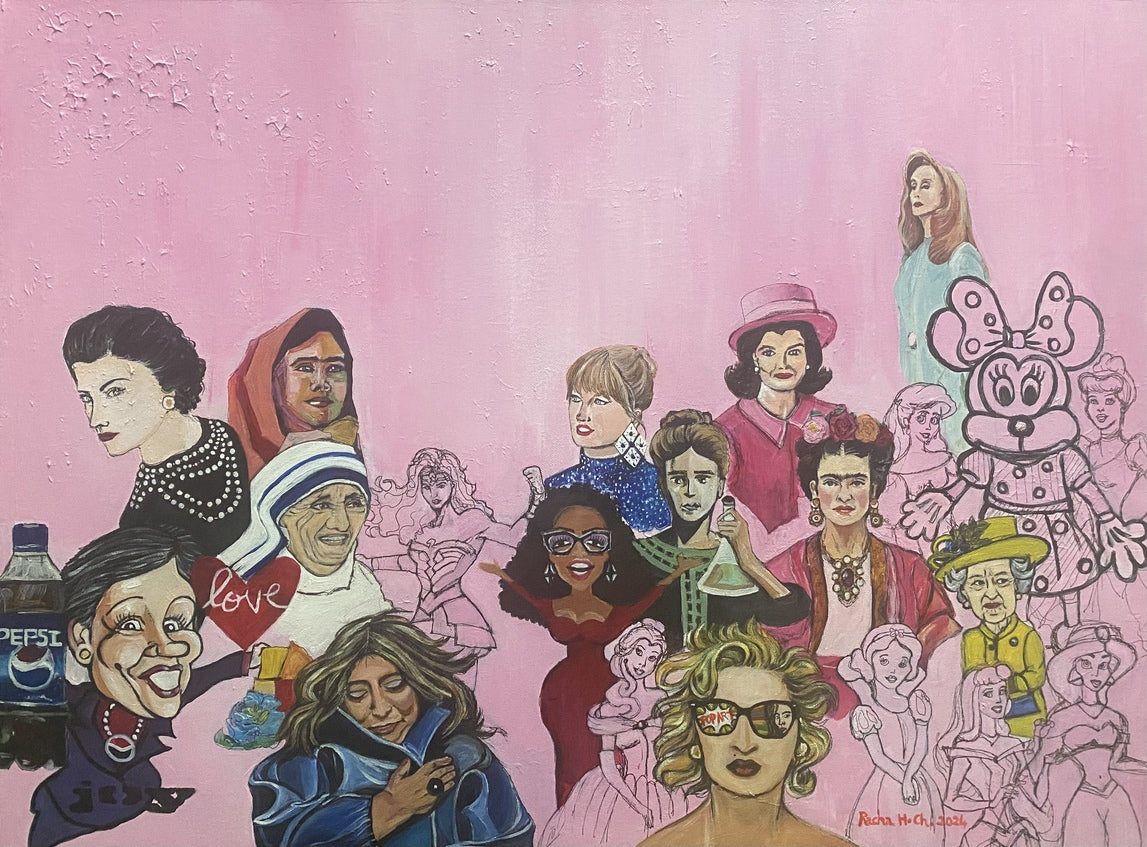 This painting celebrates resilient and influential women who have left an indelible mark on history, serving as a tribute to their strength and inspiration. It conveys a message of joy and motivation, emphasizing the ongoing process of its creation, with meticulous attention to detail.