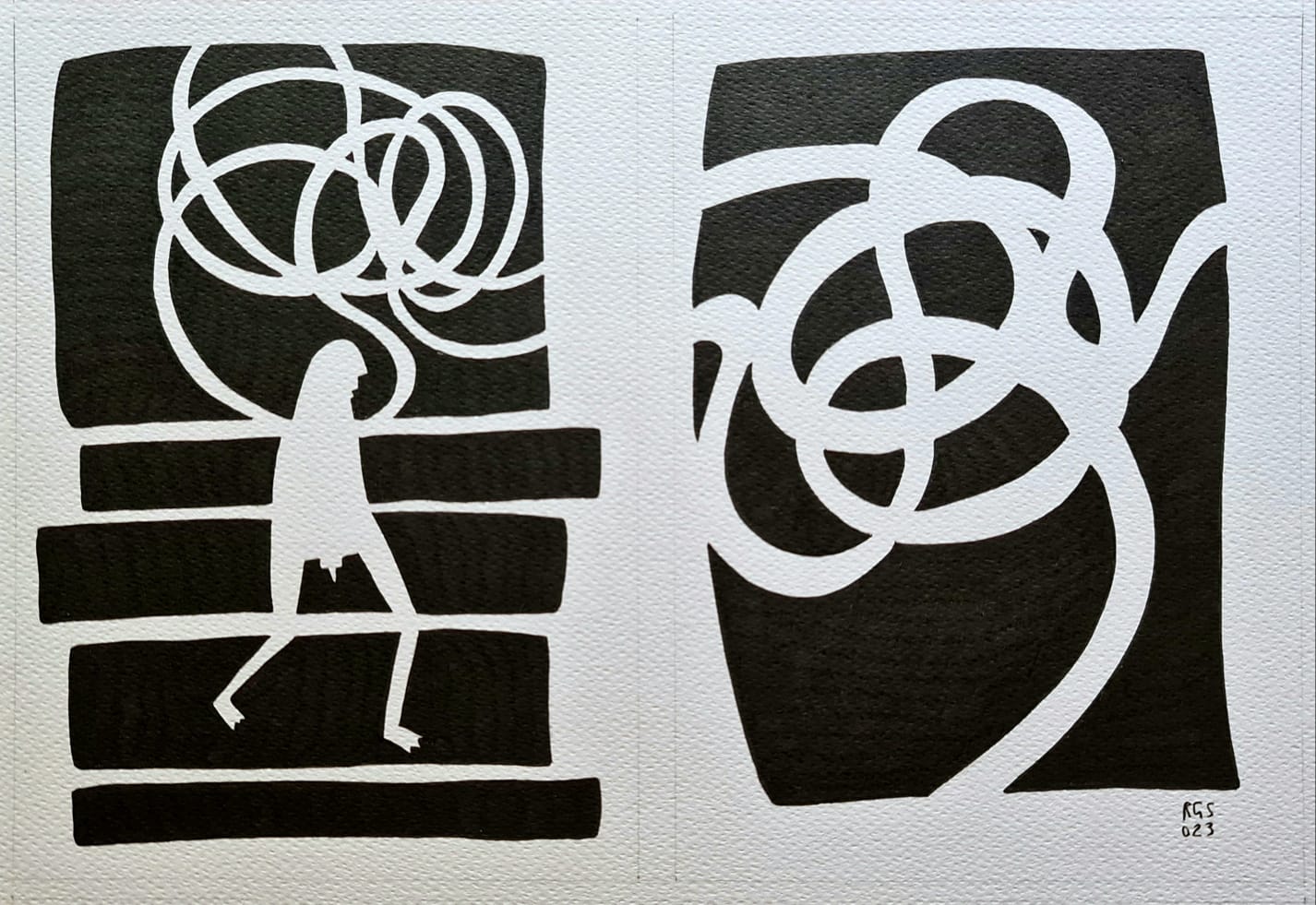 Her Illustrations (miniatures varying from A4 to A5 paper formats) are simple, straightforward, and embedded in female culture and existence. Past, present and future. She expresses herself with simple media (markers, ink, pencils) and pays special care to the relation between background and foreground, contrast, composition, and colors.