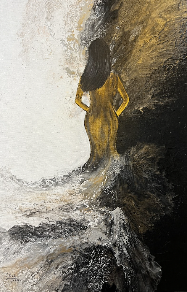 "Painting has been my hobby since I was a kid, and it grew with me so I decided three years ago to start painting, and to show the world my art, and how I express my feelings throughout those canvases. I am a second-year student in interior design. I have participated in the art festival “Palette Atelier”, and I am looking forward to participating in more art events in the future".