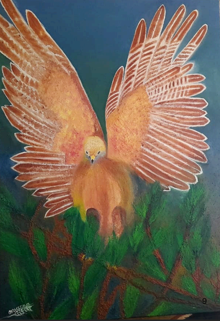 Titled Landing, this oil painting captures a fleeting, graceful moment as a bird touches down on a tree branch. The scene is filled with quiet tension — the stillness of the branch contrasts with the motion of the bird’s delicate wings, mid-fold. Soft brushstrokes and earthy tones evoke a sense of calm and precision, highlighting nature’s balance. There’s an emotional undercurrent of arrival and belonging, as if the bird has finally found a place to rest — a subtle symbol of peace, trust, or the end of a journey.