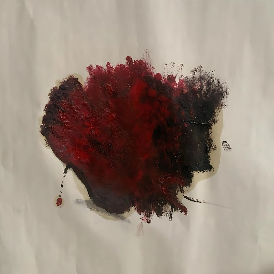 This painting presents a highly symbolic representation of openness, defiance, and the source of life. The condensed black-red body, stretched horizontally, suggests a departure from conventional human forms, emphasizing transformation and intensity. The open head and body symbolize liberation—mentally, emotionally, and socially—challenging mainstream constraints. This openness is not passive but driven by passion, fueling resistance and self-determination.