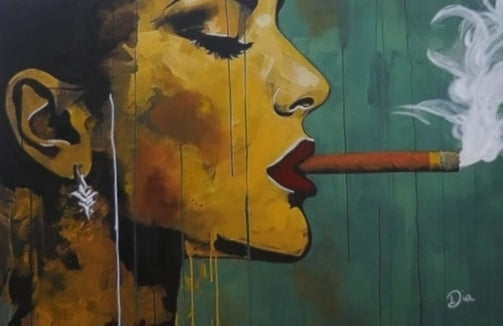 In this portrait, Nostagie Cubaine, the woman smoking a cigar becomes a symbol of character, independence, and rebellion. It represents her refusal to conform to societal expectations, highlighting her strength and resilience.