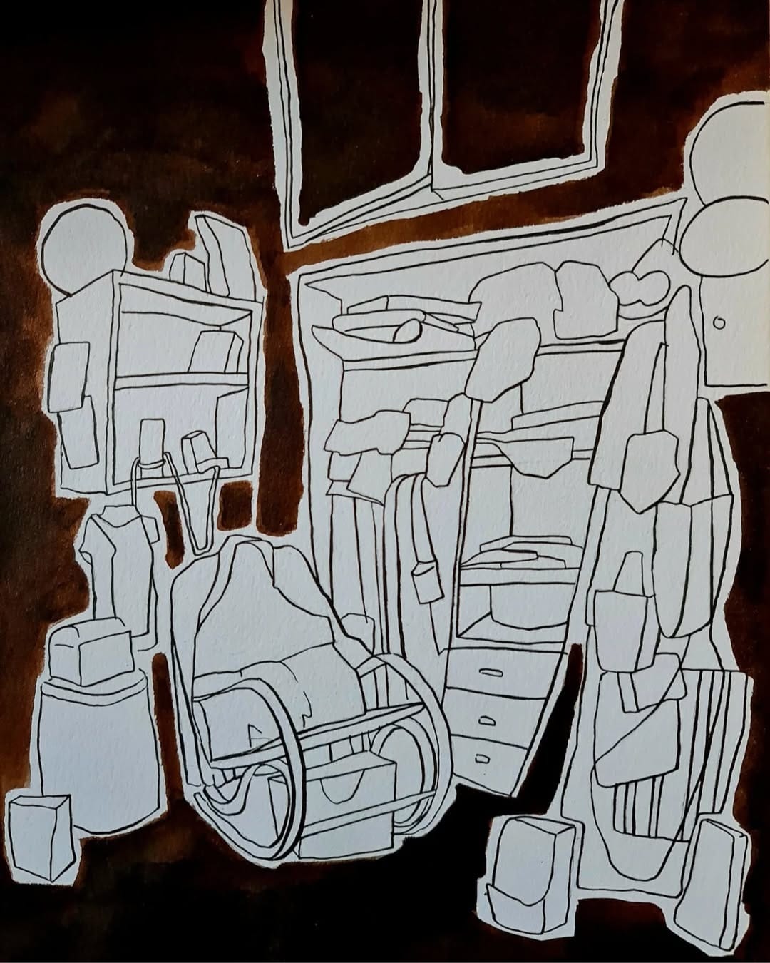 Her Illustrations (miniatures varying from A4 to A5 paper formats) are simple, straightforward, and embedded in female culture and existence. Past, present and future. She expresses herself with simple media (markers, ink, pencils) and pays special care to the relation between background and foreground, contrast, composition, and colors.