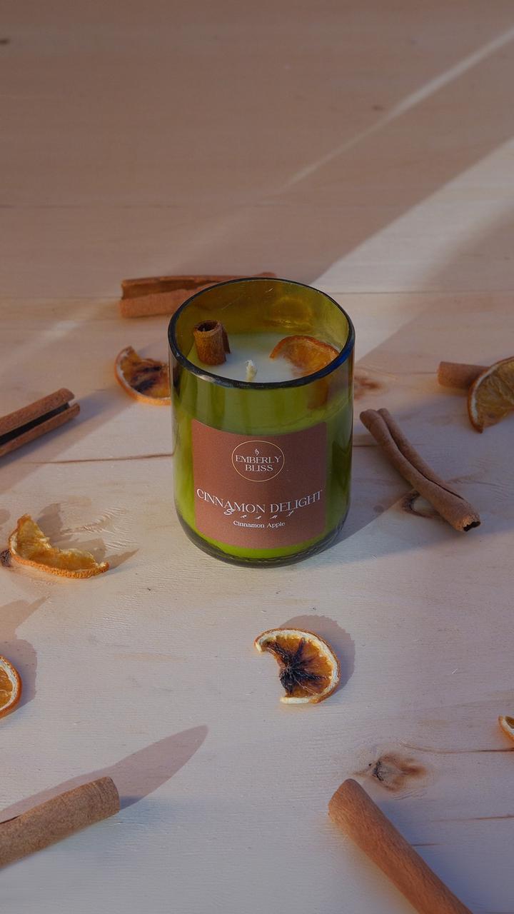 Organic Soy Wax Candle in Recycled Wine Glass - Cinnamon and Apple