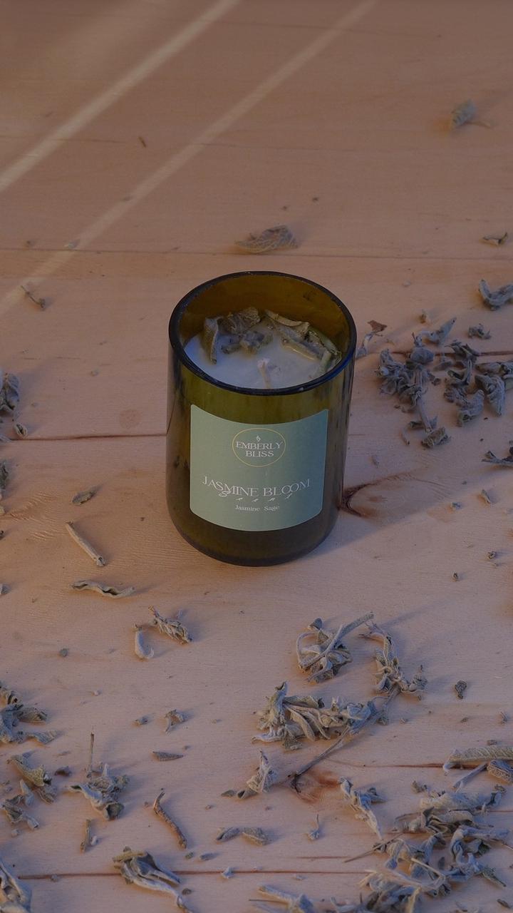 Organic Soy Wax Candle in Recycled Wine Glass - Jasmine and Sage
