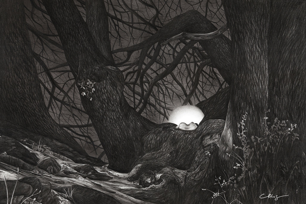 “Plénitude” depicts a woman resting in the hollow of a cedar tree, shining through the darkness. As Lebanon kept sinking deeper into the economic crisis, nothing seemed to matter when I was looking up at the massive cedars of Maaser el Chouf.