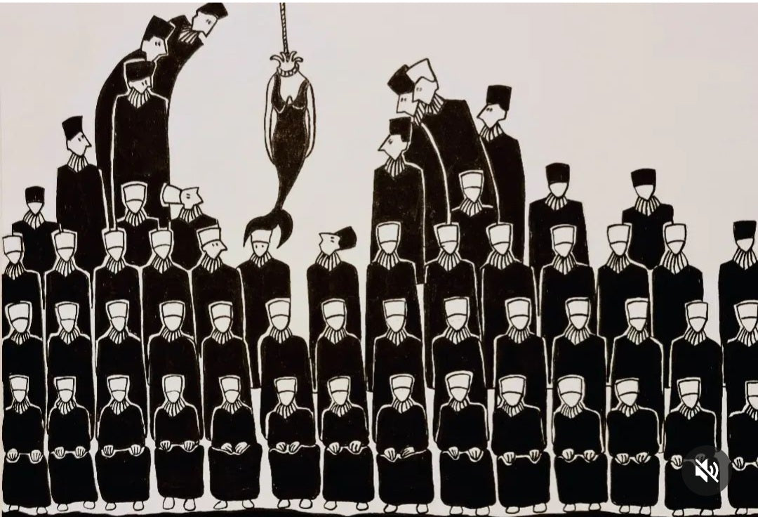 The female body, a vessel of contradictions, is revered and condemned throughout history. Here, it is elevated yet again—suspended between sanctity and sacrifice. This stark composition questions the boundaries imposed upon femininity, inviting a deeper contemplation of the body’s place in power, myth, and mortality.