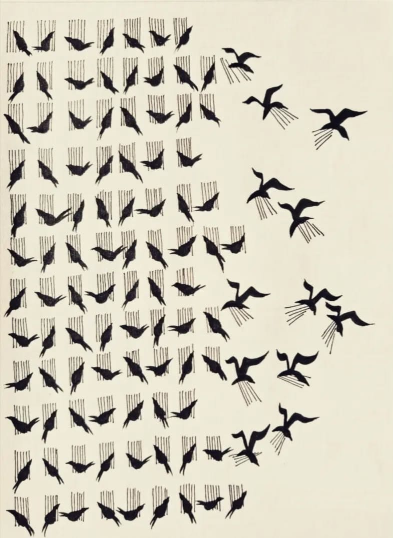 Living up to it may be the only reward: though blessed with wings to fly, the crow realises that its cage is the only possible sky,