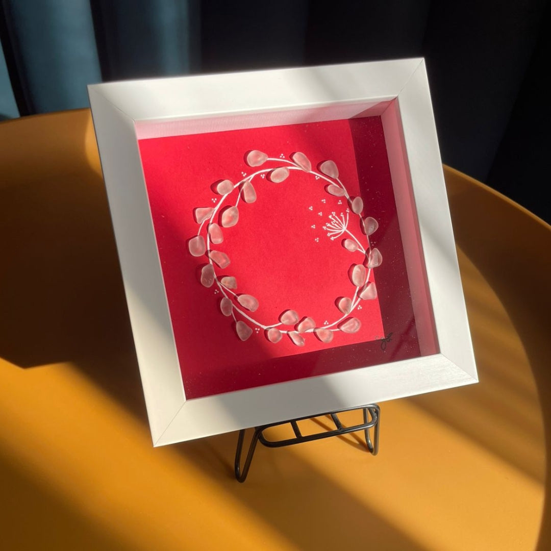 Each arrangement tells a story, celebrating the beauty of nature and the spirit of renewal by transforming discarded remnants into works of art. Made from sea glass, canson paper, a frame, and glue, every piece is born from a love of the sea and a commitment to sustainability.