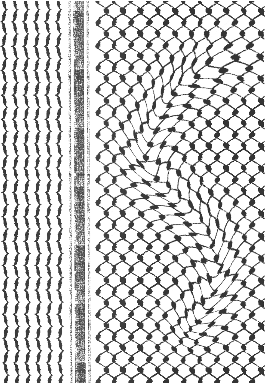 The Viscosity is a representation of the 1948 Nakba and the ongoing flight of the Palestinian people; this screen print portrays the pattern of the Kuffiyeh shifting and flowing like the fluidity of water. Just as water can be displaced from its source, redirected with obstacles, the Palestinian people were uprooted and forced to find new paths. Water, through fluidity and persistence, always maintains a connection to its source, the clouds that rain on the mountain to create rivers that end up in lakes will make it back up to the clouds one day, this is a certainty that can’t be changed. The resilience and stubbornness of the water’s flow mirrors that of the Palestinian people, whether that be by occupation and war in our homeland or as refugees and foreigners in the diaspora. Trauma and loss shape our narrative, much like how water shapes the landscapes.